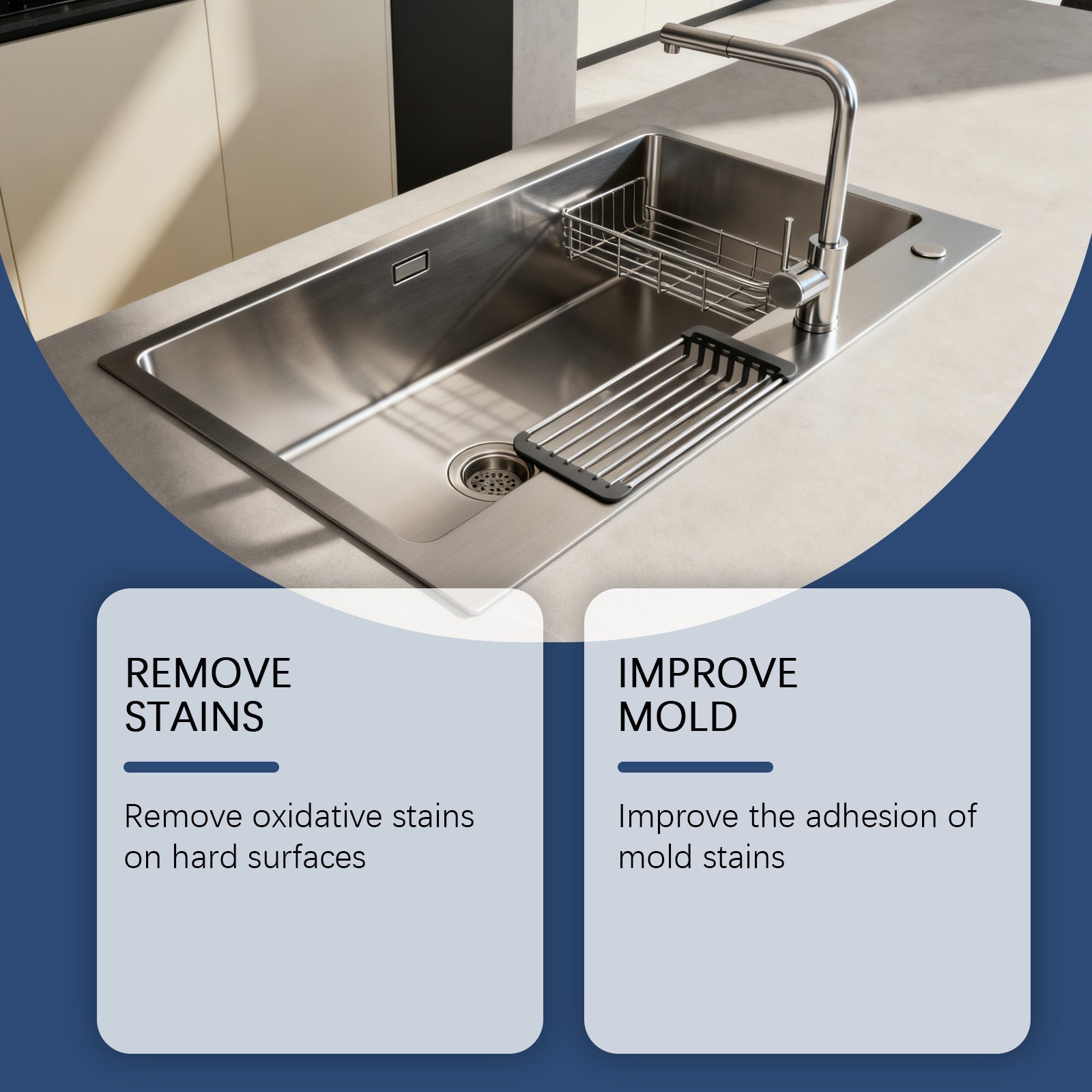 Introducing our Home Stain Cleaner with a deep cleaning formula that effortlessly removes stubborn stains and mold from sinks, tiles, bathtubs, and more – bringing your home back to pristine condition!